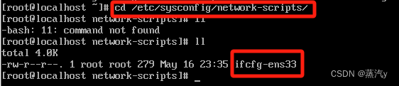 在终端中输入【cd /etc/sysconfig/network-scripts】进入网络配置文件目录→输入【ll】查看目录下的文件,如图9所示。