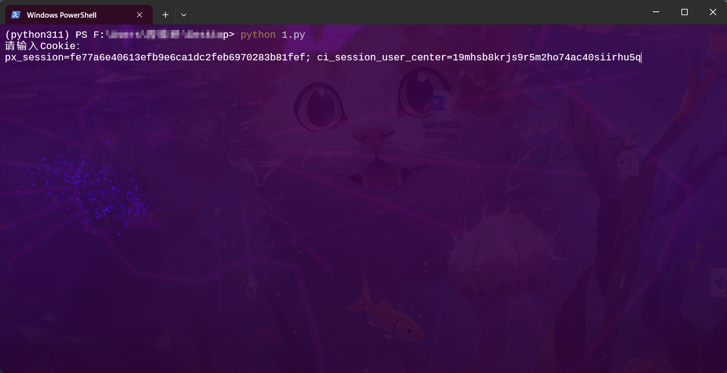 cookie = input("请输入Cookie:\n")