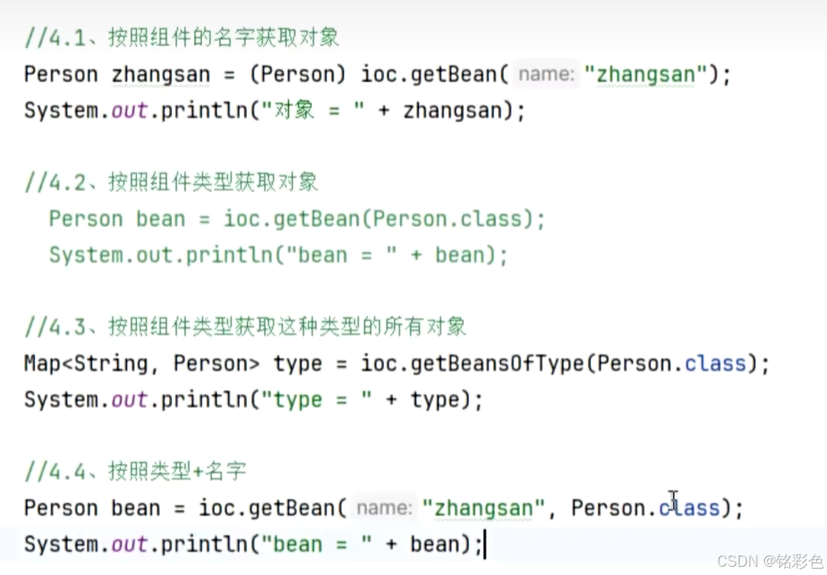 * 即通过bean的类型、bean所继承的类的类型、bean所实现的接口的类型都可以获取bean