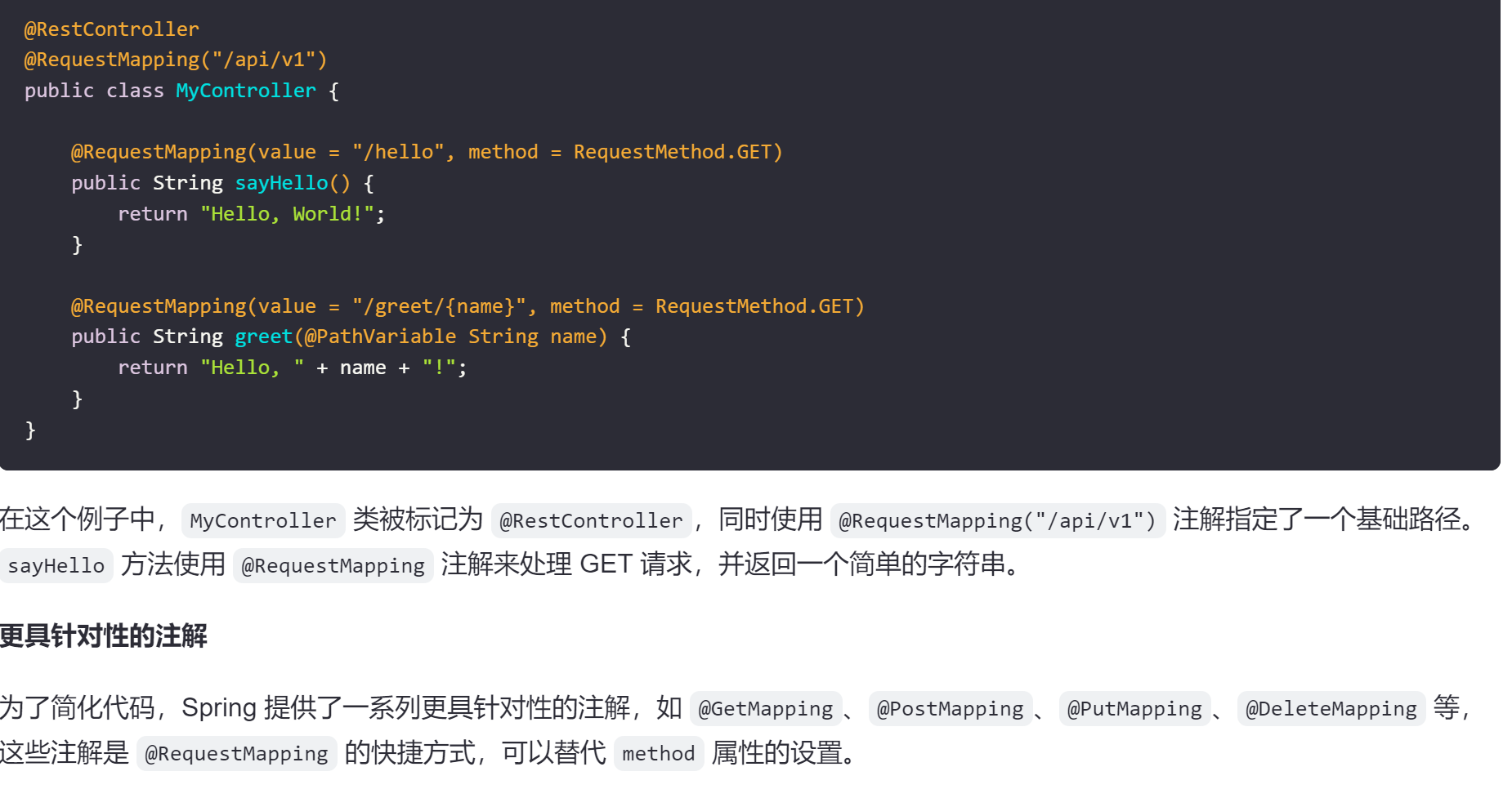 @RequestMapping 是 Spring 框架中的一个注解,用于映射 Web 请求到特定的处理方法上。这个注解可以应用于类级别或方法级别,用于指定哪些 HTTP 请求应该由哪个控制器类或方法来处理。@RequestMapping 是一个非常灵活的注解,可以配合其他注解一起使用,以实现复杂的请求映射逻辑。