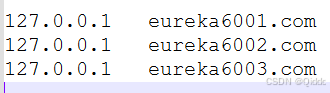 本机电脑上面路径下有个hosts文件可以编辑,在里面添加三个Eureka域名映射(使用管理员权限)