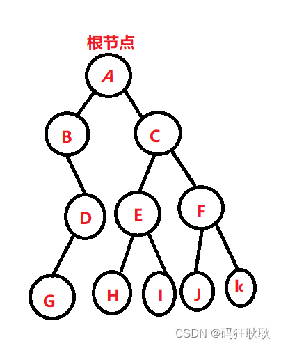 1.根结点:在树结构当中当前仅有一个结点没有父结点(没有前件),那么我们称为根结点,比如上图当中的A结点