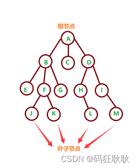 4.叶子结点:在树结构当中没有后件的结点被称为叶子结点,比如上图的J,K,L,M