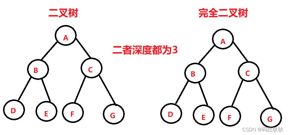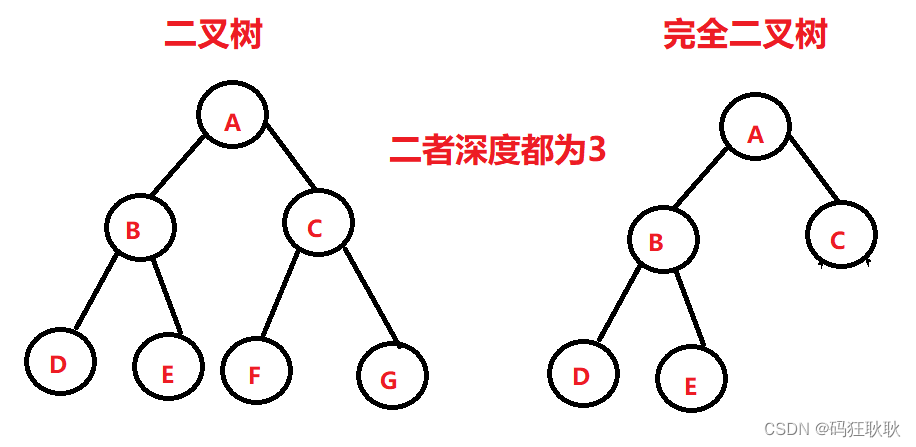 完全二叉树:深度为K的一个二叉树是某一个深度为K的二叉树的一部分(或全部),那么该二叉树为完全二叉树。