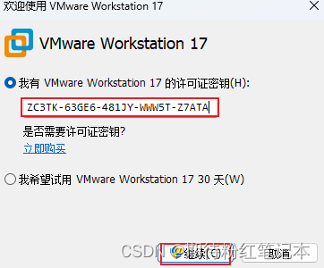 2:因为VMware官方对版权不是很严格,许可密钥可以直接在百度搜索:vmware workstation许可证密钥