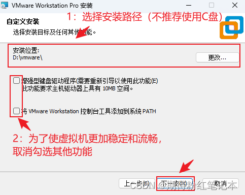 本文提供了VMware安装包的下载链接,并详细介绍了安装步骤,包括接受协议、选择安装路径、配置用户体验和许可密钥等。用户可通过百度搜索获取许可密钥完成配置。