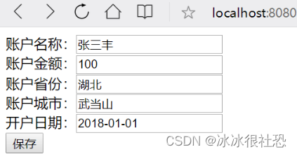 账户省份:<input type="text" name="address.provinceName"><br/>