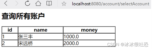 部署项目,浏览器运行localhost:8080/account/selectAccount