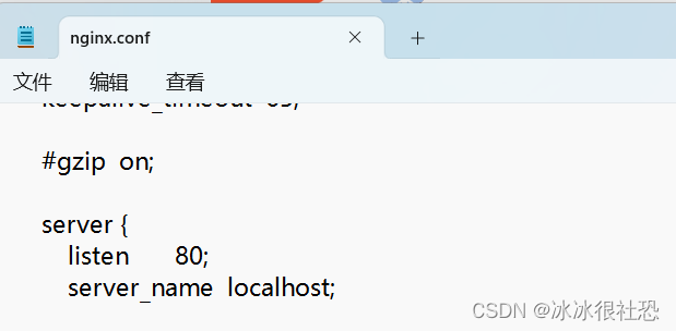 nginx的配置文件是conf目录下的nginx.conf,默认配置的nginx监听的端口为80,如果80端口被占用可以修改为未被占用的端口即可。