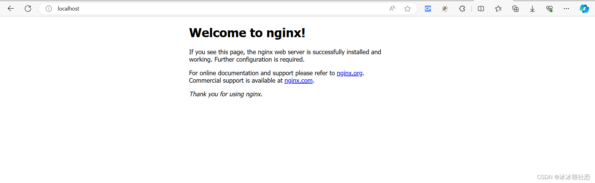 打开浏览器:浏览器地址栏输入网址 http://localhost:80 回车,出现以下页面说明启动成功!