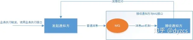 - 发起通知方将通知发给 MQ。使用普通消息机制将通知发给MQ。