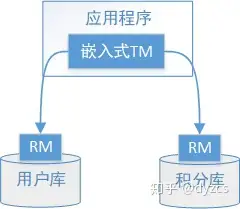 单体系统访问多个数据库实例当单体系统需要访问多个数据库(实例)时就会产生分布式事务。比如:用户信息和订单信息分别在两个MySQL实例存储,用户管理系统删除用户信息,需要分别删除用户信息及用户的订单信息,由于数据分布在不同的数据实例,需要通过不同的数据库链接去操作数据,此时产生分布式事务。