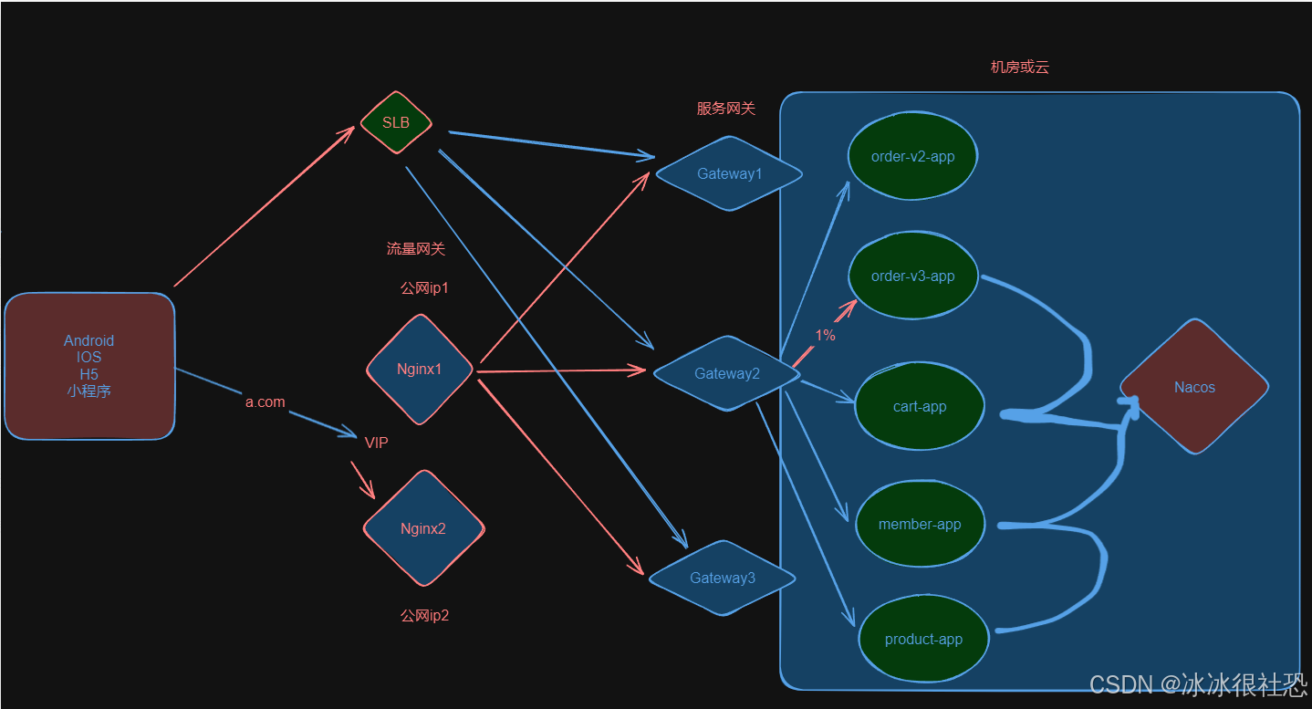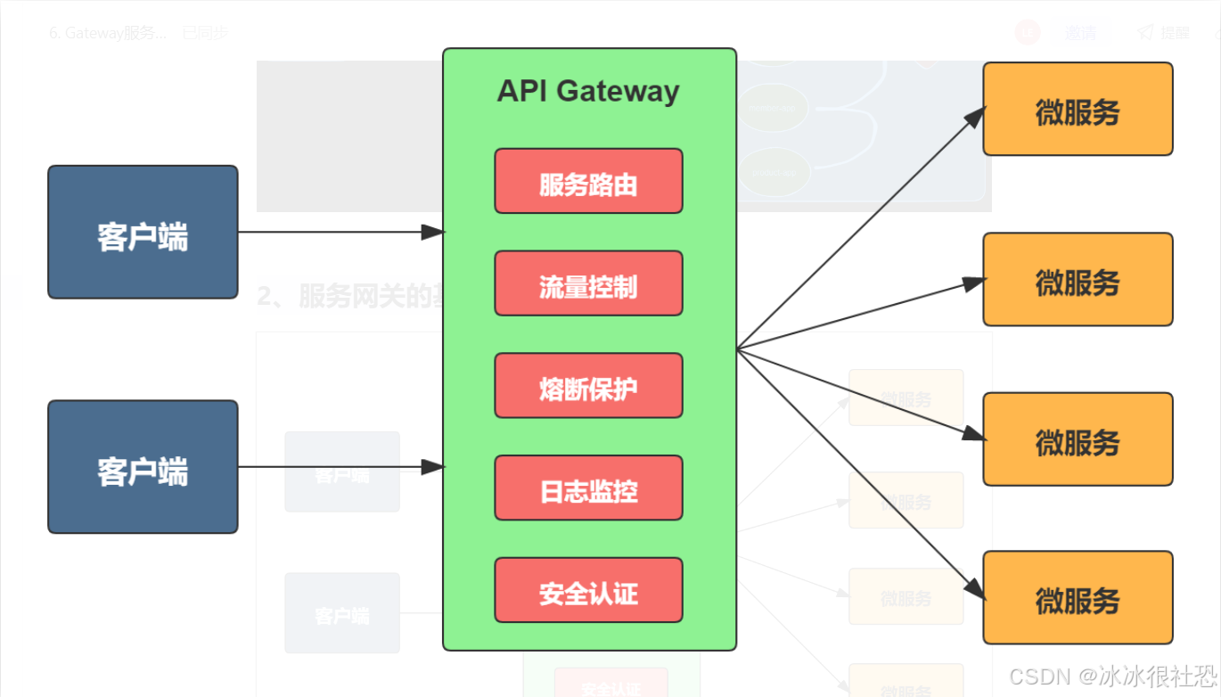 (3)解放开发人员把精力专注于业务逻辑的实现。由网关统一实现服务路由(灰度与ABTest)、负载均衡、访问控制、流控熔断降级等非业务相关功能,而不需要每个服务 API 实现时都去考虑