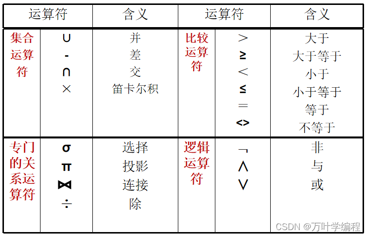 连接: 连接:从两个关系的笛卡尔积中选取属性间满足一定条件的元组