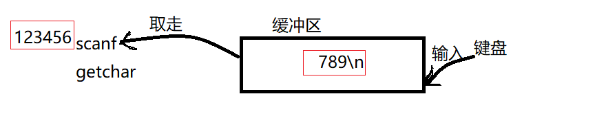 所以scanf就只取走了123456,而缓冲区中还剩下(空格) 789\n。