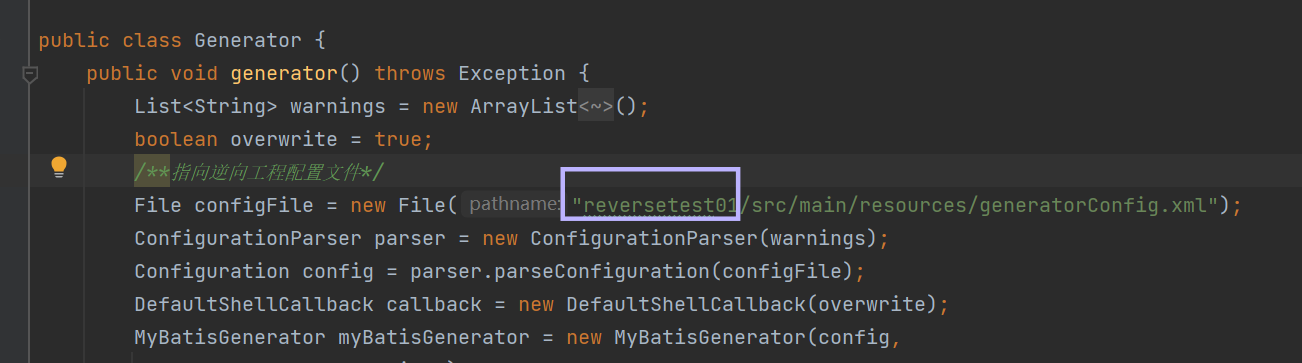 File configFile = new File("reversetest01/src/main/resources/generatorConfig.xml");
