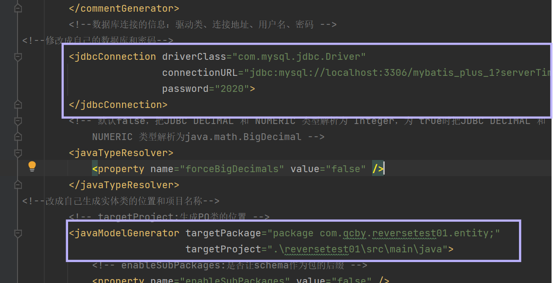 <javaModelGenerator targetPackage="com.qcby.reversetest01.entity"