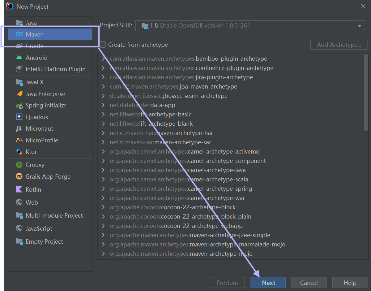 因为这里主要是学习逆向工程生成,即侧重数据库的后端方面,所以这里只需要创建一个Java的maven工程,如果还想连带着展示前端,可以创建一个maven的javaweb项目。