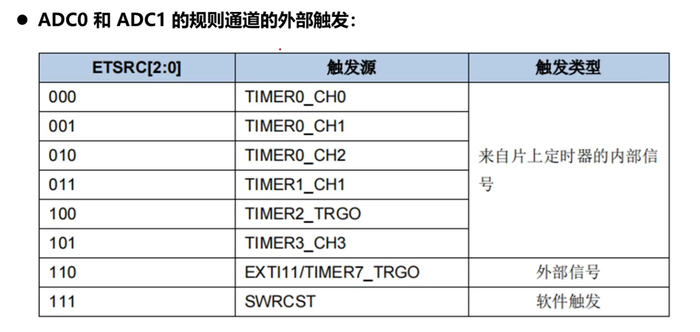 adc_external_trigger_source_config(ADC0, ADC_REGULAR_CHANNEL, ADC0_1_2_EXTTRIG_REGULAR_NONE);//软件触发
