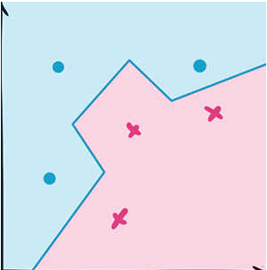 在k近邻算法中,当训练集、最近邻值k、距离度量、决策规则等确定下来时,整个算法实际上是利用训练集把特征空间划分成一个个子空间,训练集中的每个样本占据一部分空间。对最近邻而言,当测试样本落在某个训练样本的领域内,就把测试样本标记为这一类。