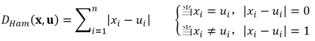 上述三个距离测度只适用于特征属性是连续变量的情况,当特征属性是离散变量时,如对文本进行分类,我们就需要用汉明距离: