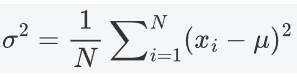 对于一个总体数据集 X={x1,x2,…,xN},总体方差的计算公式为: