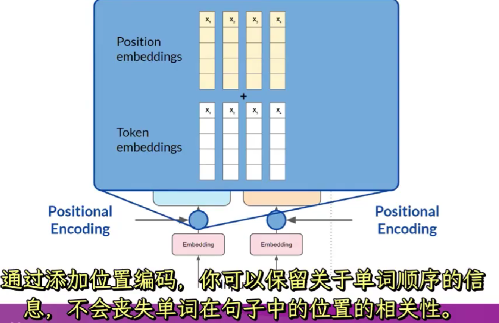 除了单词自身编码外还要添加位置编码,结果传向自注意力层
