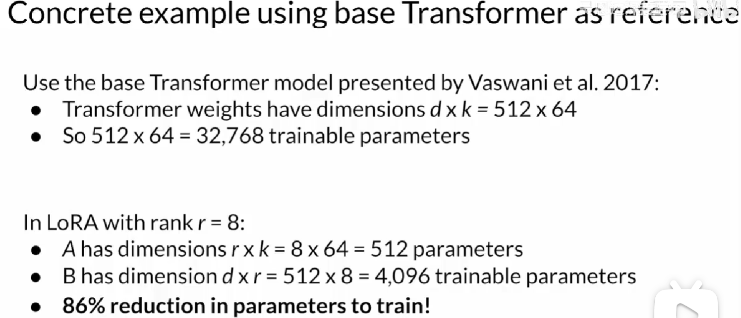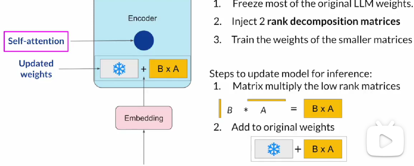 指令微调对所有参数进行更改也很费力,可以使用参数有效的微调(PEFT),LoRA是其中一种