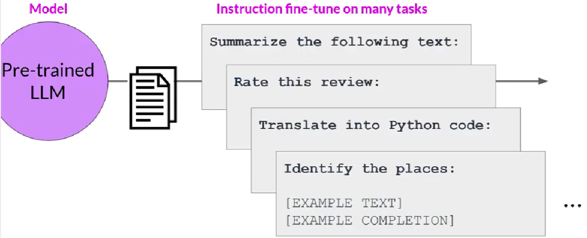LLM训练之后有了丰富知识,但是可能不知道如何回应问题,指令微调有助于改变它的行为,帮助更好完成任务