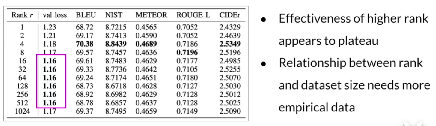 例子:使用LoRA参数高效 其中r成为秩,为可变参数