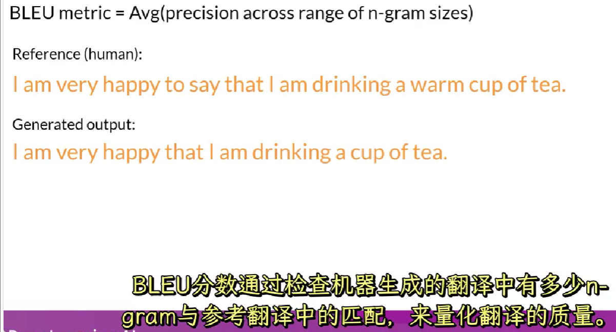 bleu(双语评估)用于评估机器翻译文本质量,同样与人工生成翻译比较