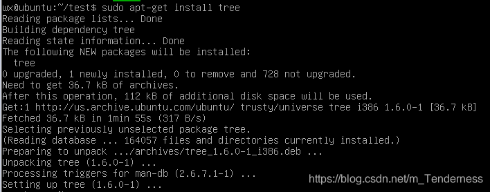 安装tree方便查看文件夹树,需要安装一会