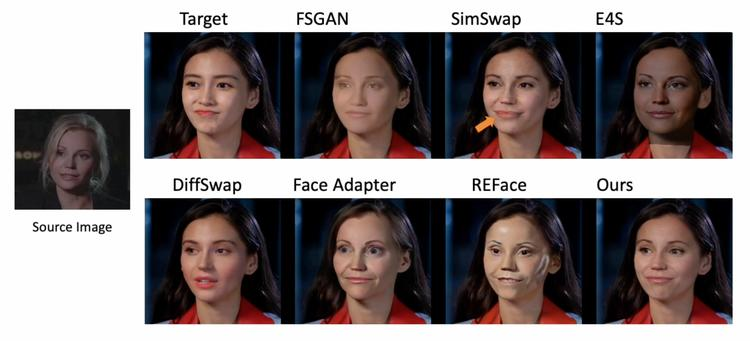 技术亮点:通过规范空间解耦分离运动与外观信息,部分身份调制模块精准控制面部区域,解决传统换脸的身份失真与动态不一致问题。