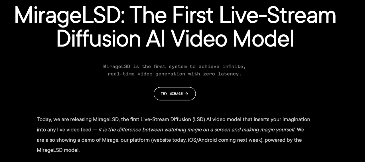 技术亮点:全球首个实时无限视频流模型,基于Live Stream Diffusion(LSD),每帧生成延迟<40ms(24FPS),支持无限长度内容创作与实时交互编辑(如将棍棒变成光剑)。