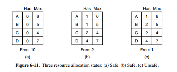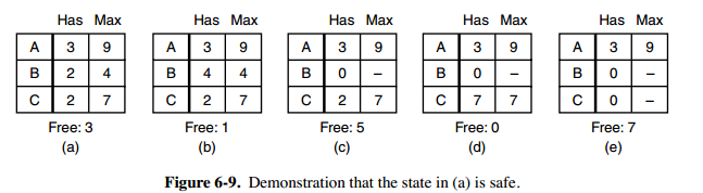 - 重复以上两步,直到所有进程都标记为终止,则状态时安全的。