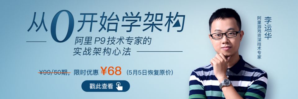 更多李运华的精彩文章,请关注他的专栏《从 0 开始学架构》,点击下图进入小程序,支持微信支付 ▽ 限时优惠¥68/50 期,最后一天!