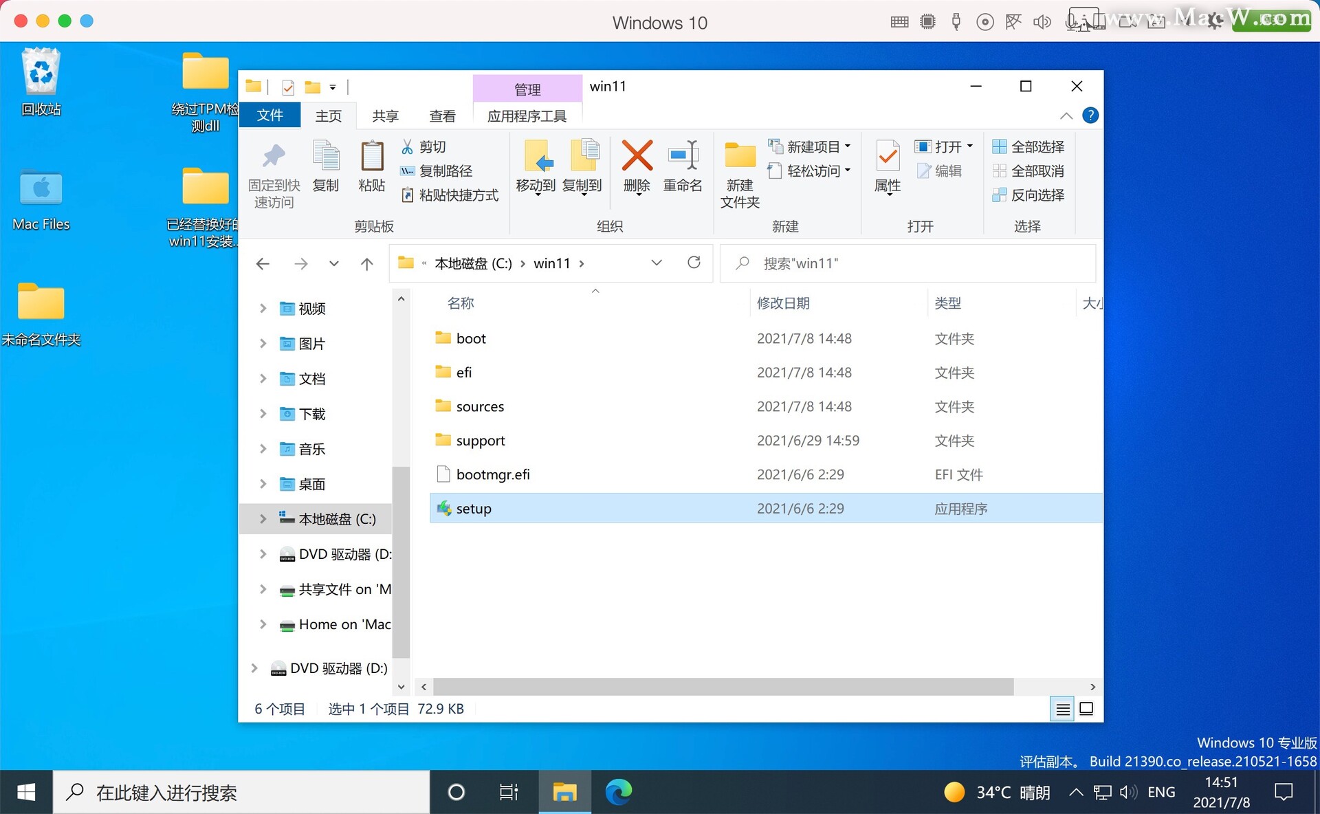 打开win11文件夹,双击setup进行安装