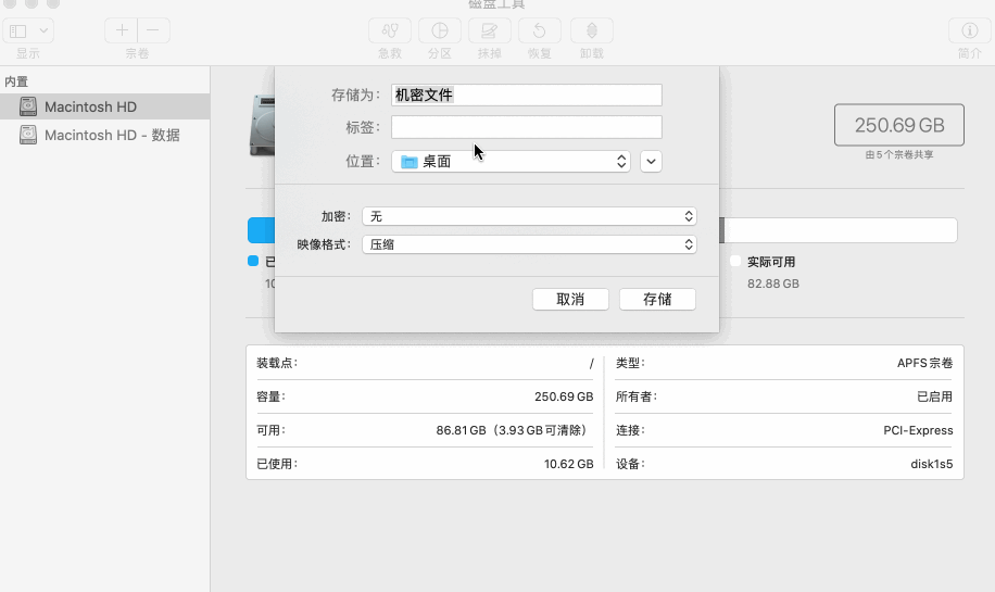 双击选择机密文件夹,然后在加密选项中选择一种方式输入密码,映像格式要改成读/写,然后点击储存 即可。