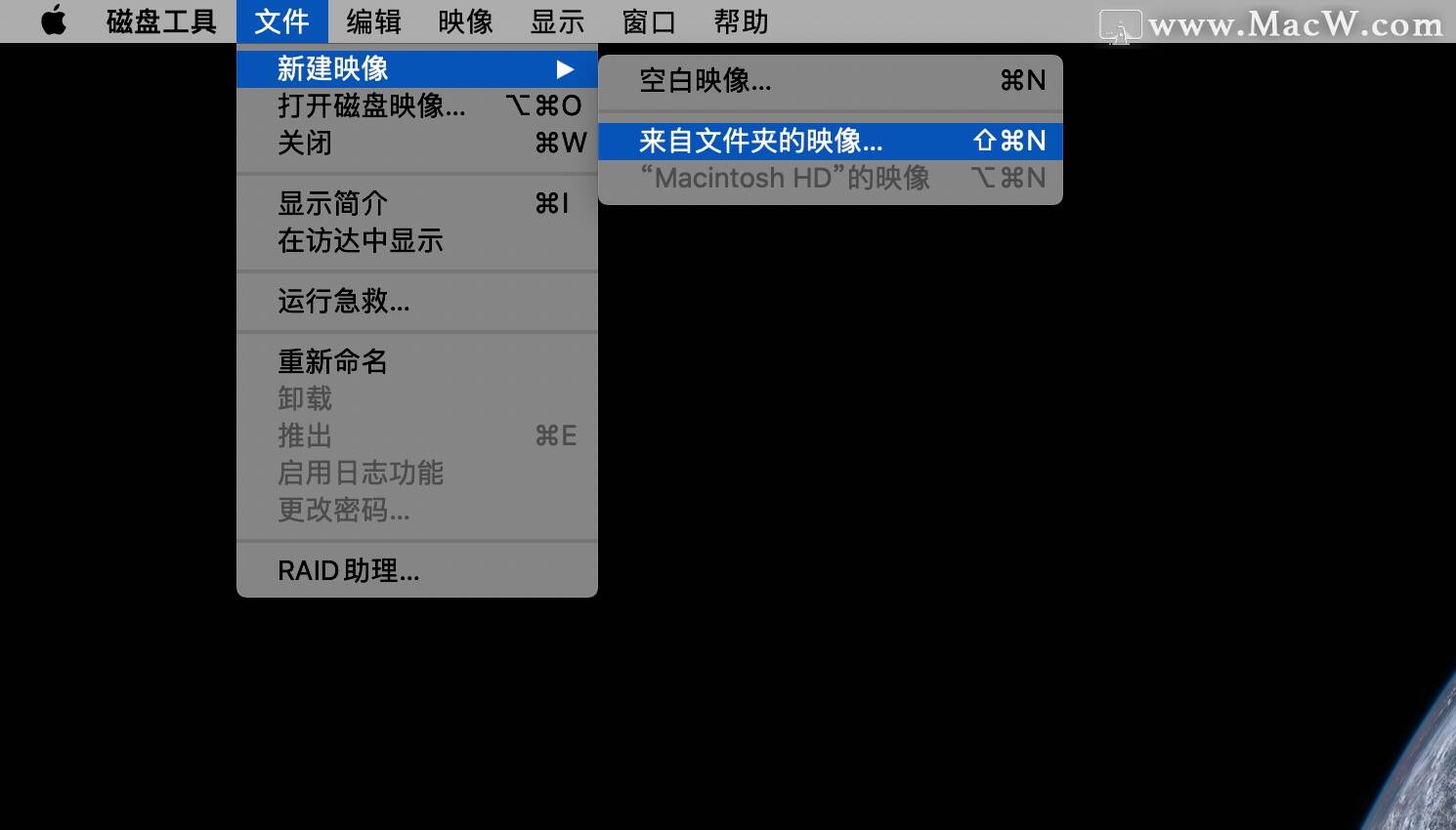 点击菜单栏中的 文件>新建>来自文件夹的映像,或者快捷键 Shift +Command + N。