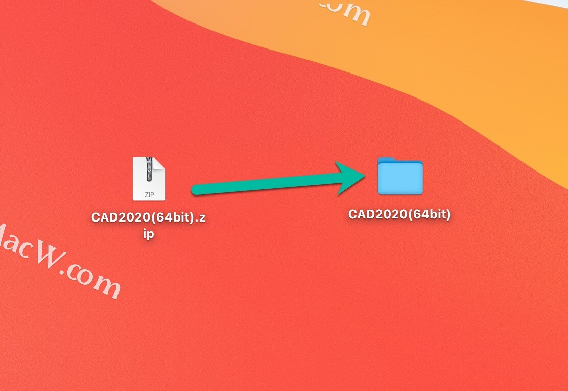 1.先在Mac中将【CAD2020】压缩包解压。
