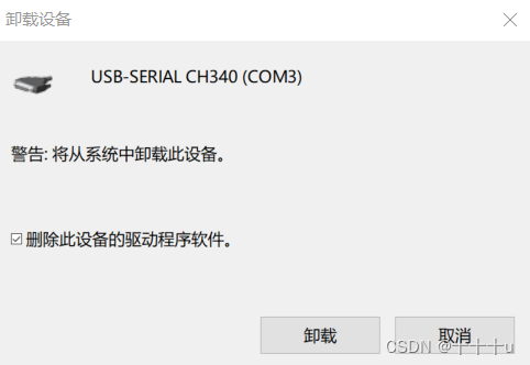 然后用CH340SER,这里如果直接点安装会失败,所以需要先点卸载再点击安装,然后再连接电脑的时候就可以正常使用串口了。