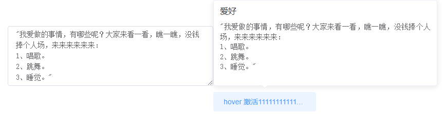 文本域中输入的值,存储后在popover弹出窗中显示,保留换行格式。