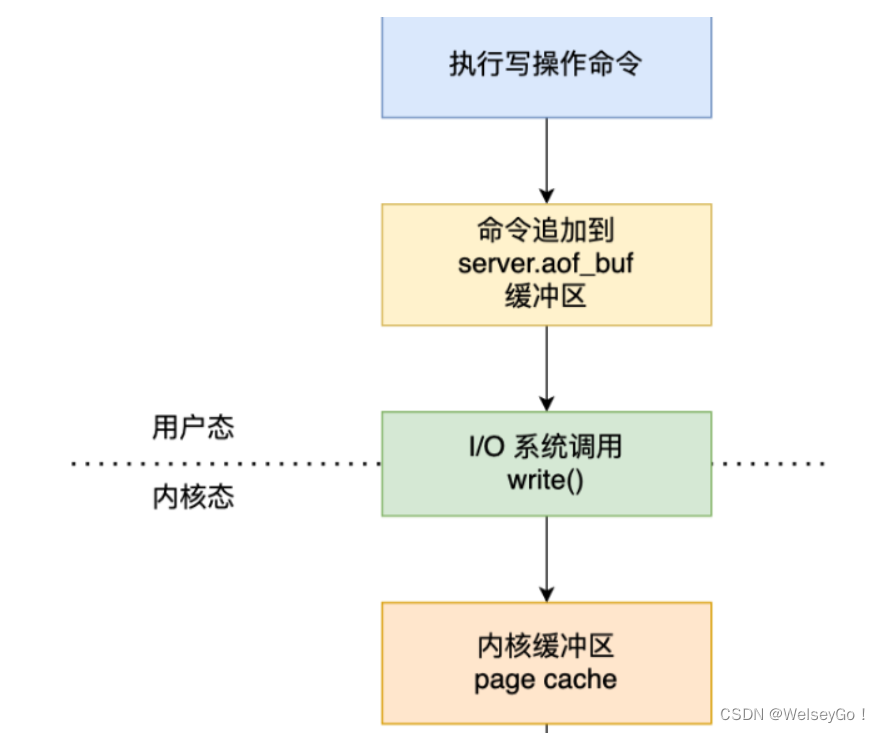 将执行后的写命令追加到 「AOF 缓冲区」(正常状态下aof存储缓冲区,等空闲了写进aof文件中);