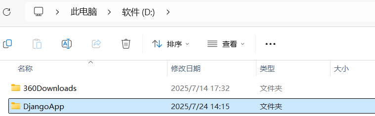 第一,默认(不写指定路径时)在当前目录下创建,即没有D:\DjangoApp这一行的话,使用mkdir会直接在C:\Users\Administrator>中创建。