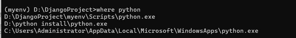 有的时候系统变量中全局python优先级可能大于虚拟环境,输入: