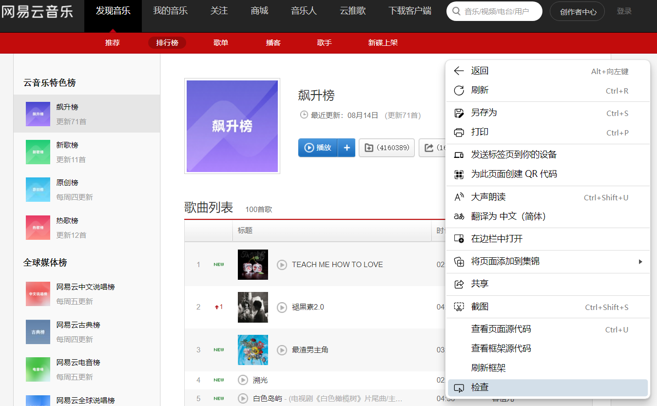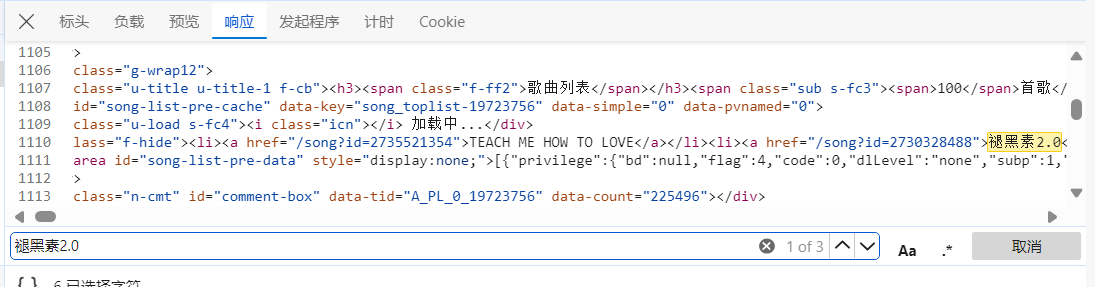 2、点击响应版面——>ctrl+F查找一首当前榜单上的歌曲名称
