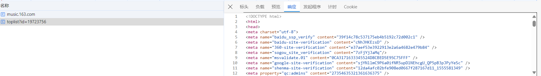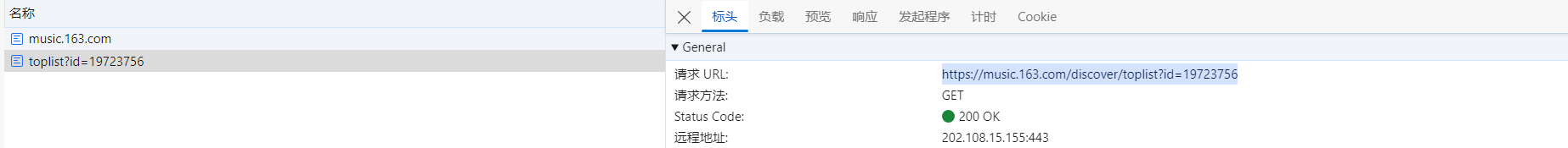 3、点击“toplist?id=19723756“——>标头——>找到”请求url“(第一行),复制(为爬虫的请求地址)