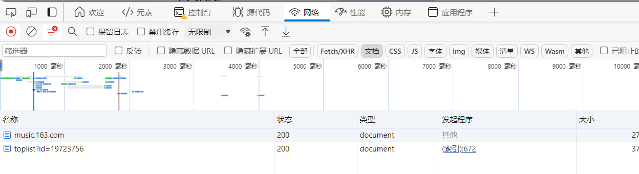 2、点击网络——>文档——>刷新网页(ctrl+R)
