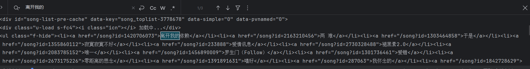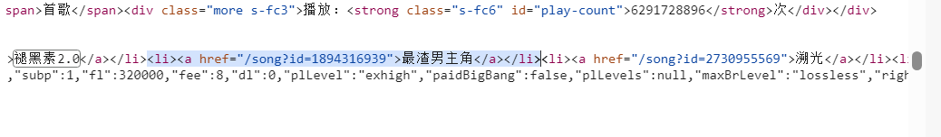song_list = re.findall('<li><a href="/song\?id=(.*?)">(.*?)</a></li>',html_data)]