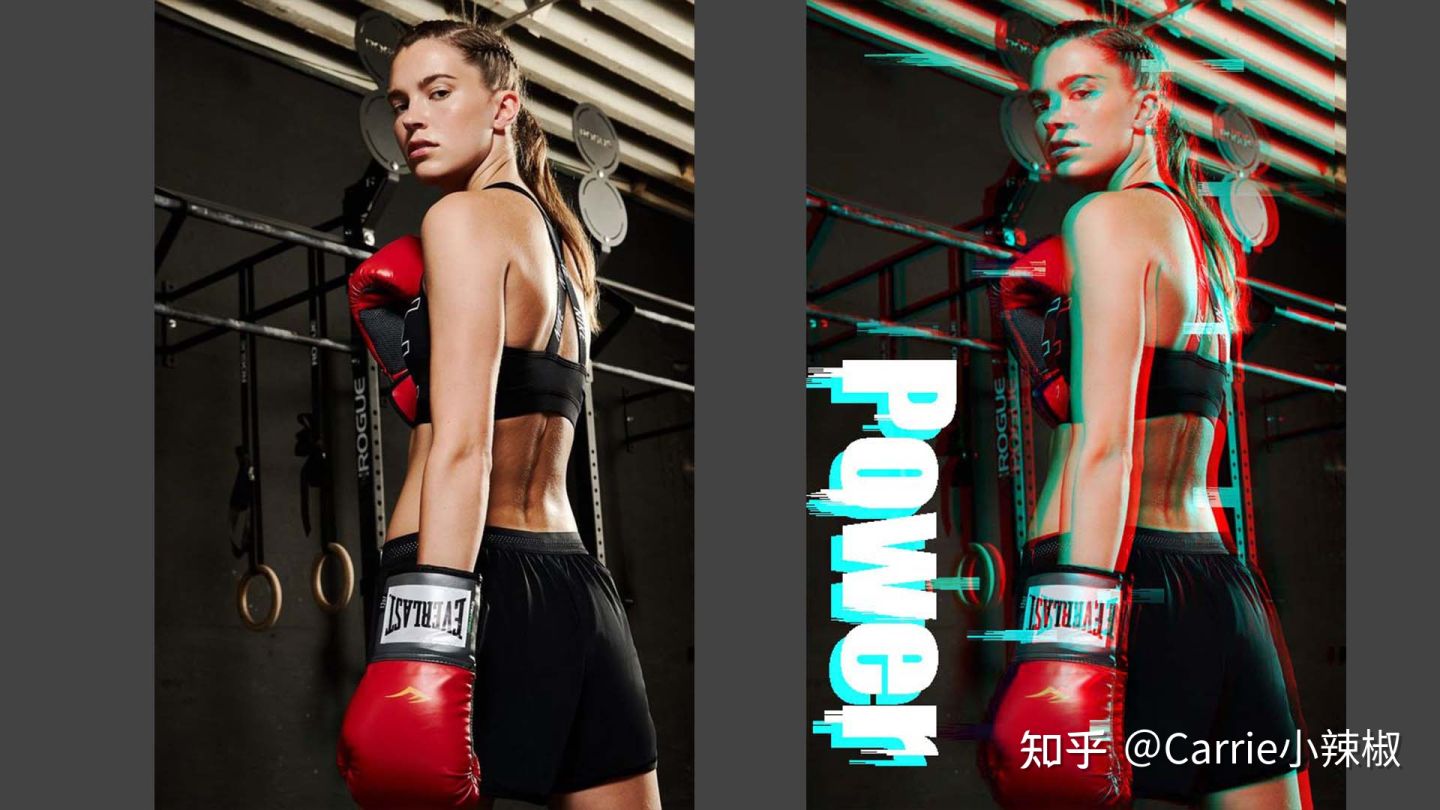 - 再次复制拷贝1图层,Command+J 创建图层拷贝2、拷贝3,将拷贝2图层混合模式中R去掉保留G、B,将拷贝3图层混合模式中G、B去掉保留R,并轻微左右移动图层拷贝2、拷贝3,按住 Option 点击再创建剪贴蒙版,仅对黑色图层生效
